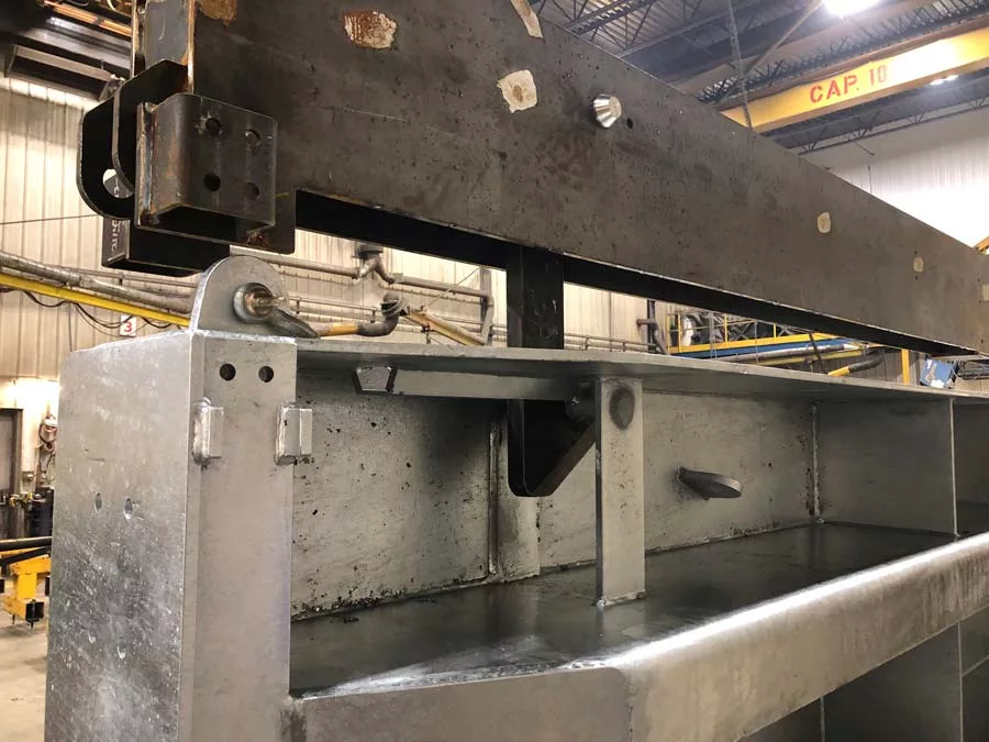 Le palonnier est guidé par les rainures des poutrelles. Une grue mobile ou un pont roulant est requis pour l’installation et le retrait des poutrelles.