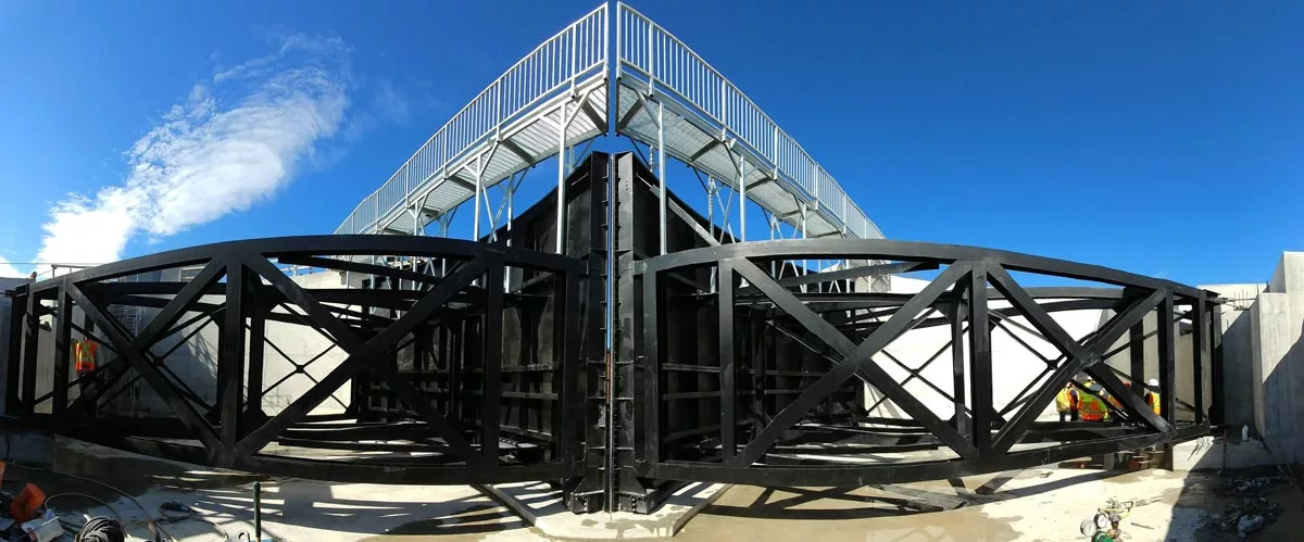 Ces vannes, aussi appelées écluses maritimes, sont couramment utilisées aux entrées de marinas, où le passage doit être assuré malgré les plus grandes variations de marée possibles.